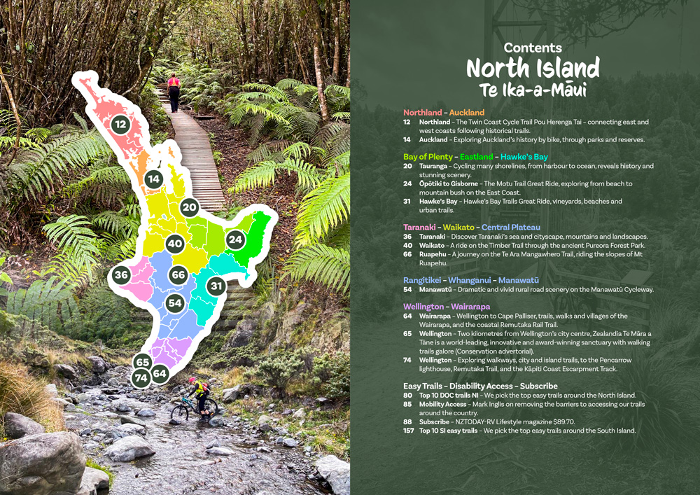 The fifth Special Edition Walk & Cycle Trail 2026 collection is now available in both physical and digital formats. On sale in retail outlets from mid-December 2025. Packed full of shared trail experiences collected from the bi-monthly NZTODAY-RV Lifestyle magazine, Top Regional trails, both urban and rural, Great Walks and Trails, Mountain hikes. 40+ trails to plan your future adventures from.